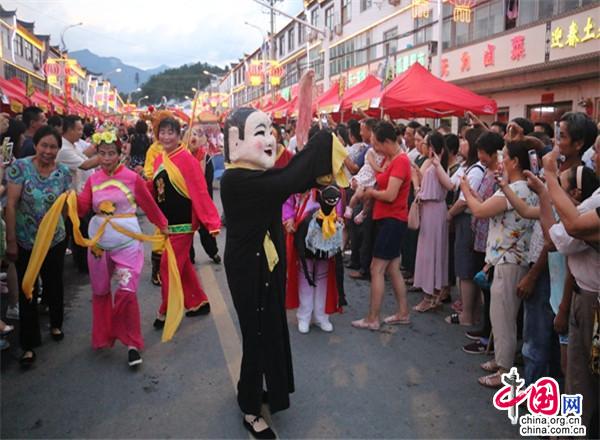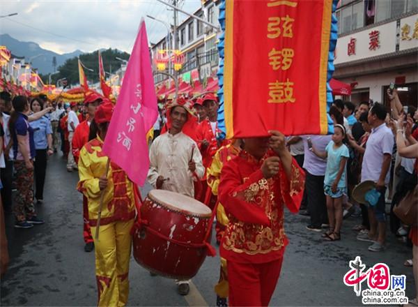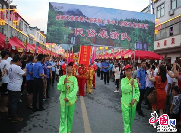 小鎮(zhèn)很熱鬧。小鎮(zhèn)現(xiàn)已入駐了十幾家大型連鎖超市,500多家賓館飯店,300多家購物店。每到雙休日,操著各色口音的四海賓客在街上蹓跶、徜徉,或在超市購物店里選購精美的土特產,或在酒店里品嘗著山珍野味,或在KTV里痛快豪嗓,或圍著篝火歡歌勁舞,有的干脆就光著膀子在露天的小吊鍋前劃拳行令,恣意灑脫,好不愜意。每年農歷六月初六,天堂寨都要舉辦隆重的天貺節(jié),天堂寨鎮(zhèn)政府門前的一公里主街道兩邊擺起了長龍似的紅色帳篷,“百家吊鍋宴”成為中外游客免費品嘗天堂寨美食的饕餮盛宴。人們一邊喝著小吊美酒,吃著山珍美味,一邊欣賞著穿街而過的威風鑼鼓、騰龍舞獅、儺戲花船、獨輪推美女、花棍打癡郎等不斷推陳出新的民俗風情表演。酒足飯飽之后,再到政府廣場觀看精彩紛呈的文藝節(jié)目。一時間,人山人海,把一個千米“長街”擠得水泄不通;歡聲笑語,把一個深山小鎮(zhèn)匯成了歡樂的海洋……