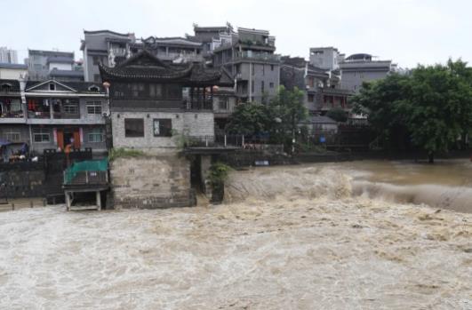 受持續(xù)強降雨影響,4A級景區(qū)乾州古城積水嚴(yán)重