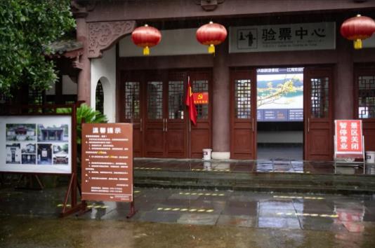 受持續(xù)強降雨影響,婺源江灣景區(qū)入口豎立起了“景區(qū)關(guān)閉、暫停營業(yè)”的提示牌