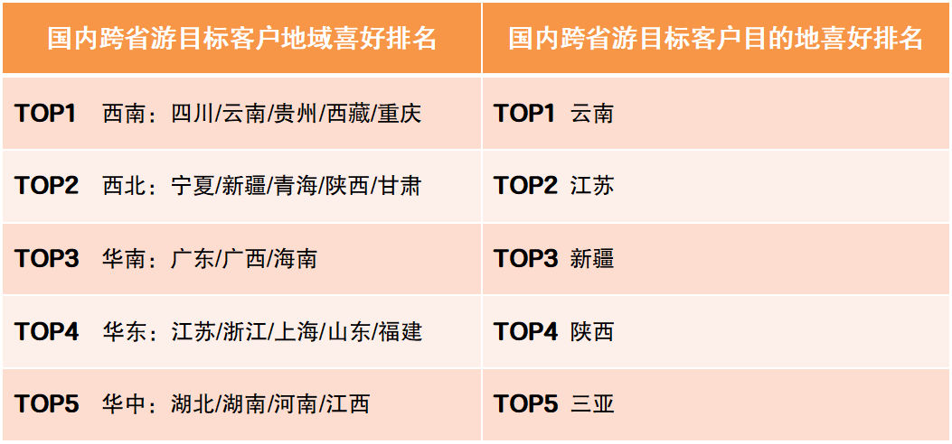 國(guó)內(nèi)跨省游目標(biāo)客戶消費(fèi)偏好