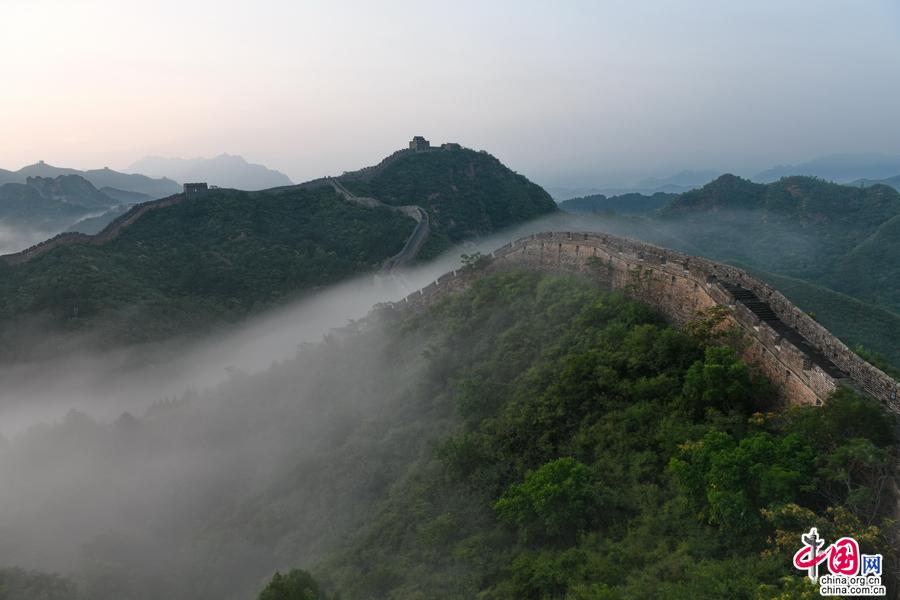 進(jìn)入夏季,金山嶺長(zhǎng)城出現(xiàn)云霧天氣多達(dá)二十多次,美輪美奐,令人神往。