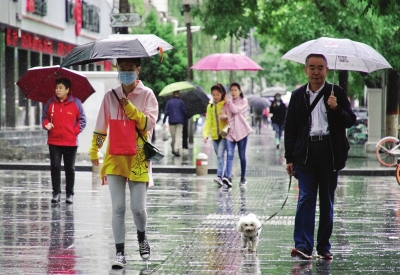 連日降雨使得市區(qū)氣溫下降,市民穿上秋裝。甘霖攝