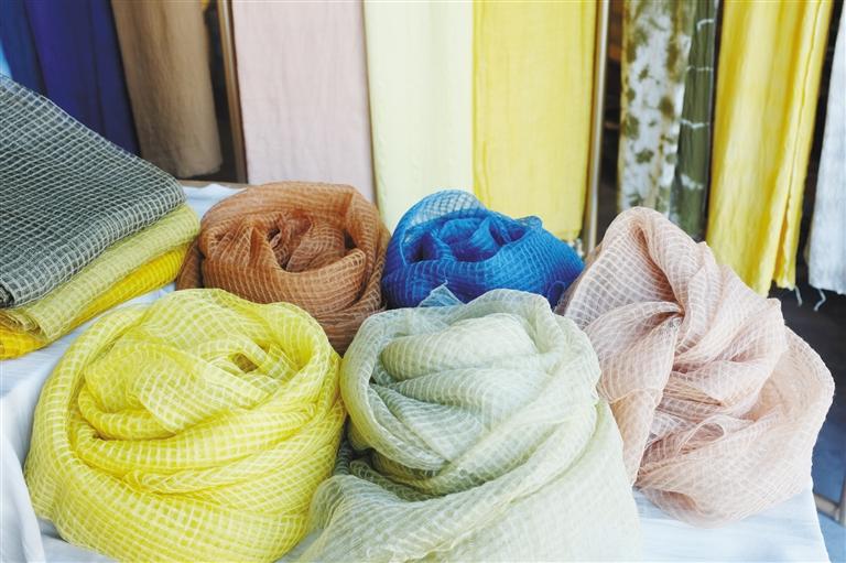 “農(nóng)女手作”中藥材染色絲麻圍巾