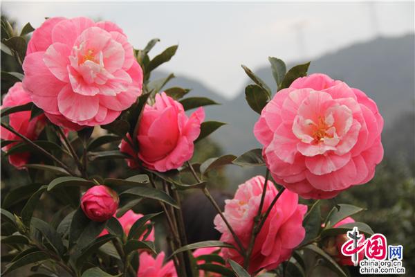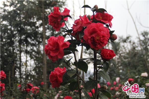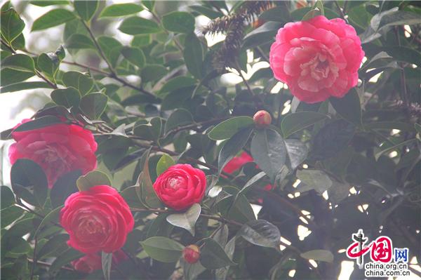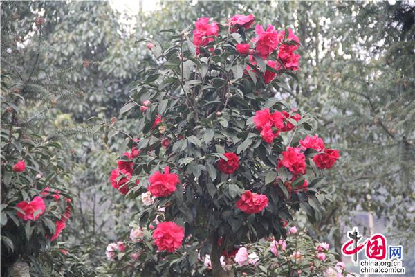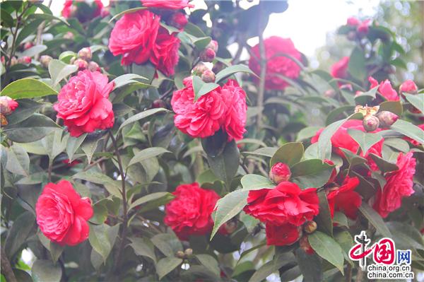 一輪艷陽照四方,一席春風(fēng)綠千山。山茶花是中國傳統(tǒng)名花,也是世界名花之一。2月21日,朋友相約,從縣城出發(fā),約8公里就進(jìn)入九龍生態(tài)園,姿態(tài)各異的山茶花已進(jìn)入盛花期,樹姿虬勁優(yōu)美,綠葉四季不凋,一朵一朵的茶花大如牡丹,燦如云霞,風(fēng)姿綽約,耀眼生輝!植株形姿優(yōu)美,葉濃綠而光澤,花形艷麗繽紛,美艷了。有的鮮紅如火、有的嬌羞染粉、有的晶瑩潔白……滿園茶花勝景。不經(jīng)意間清風(fēng)吹過,暗香徐來,朵朵花兒隨風(fēng)舞。陽光穿透葉子的縫隙,落在花間小道上,花香彌漫整個(gè)鼻腔,放低自己,品味花香,眼里有花、心里有花,人生就會(huì)像花一樣美麗。