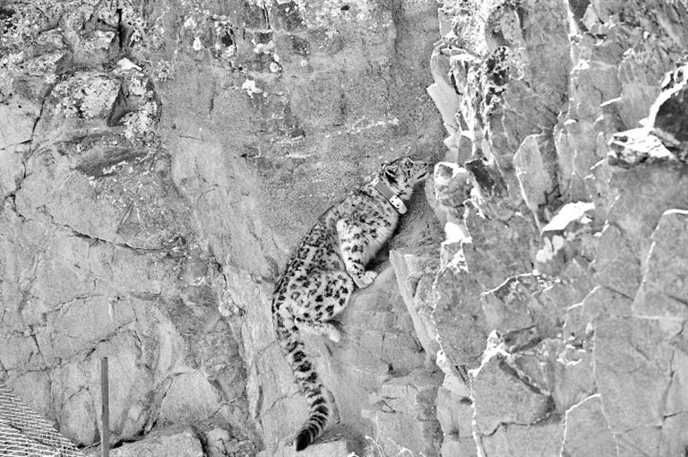 佩戴定位項(xiàng)圈的雪豹。通訊員朱蕊 烏力吉 攝