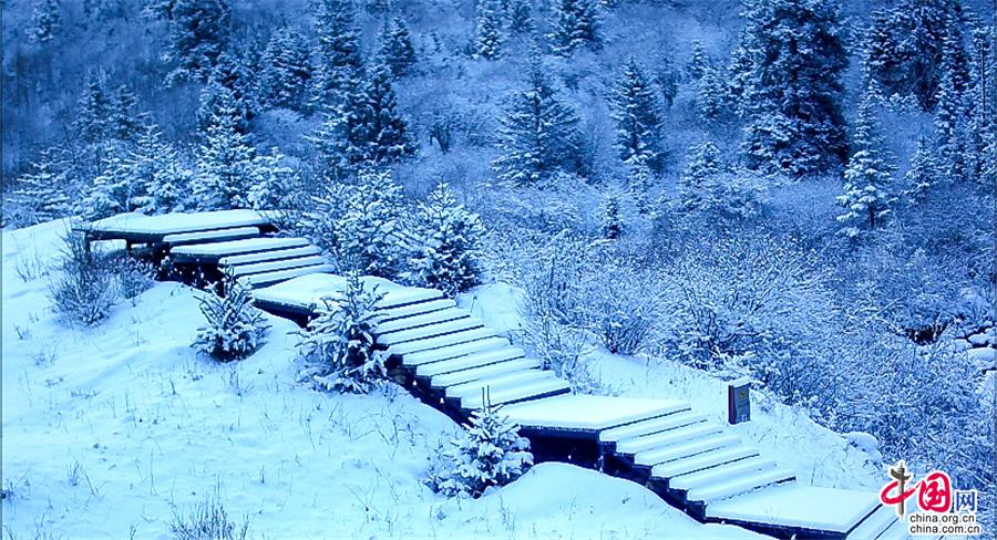 大雪紛飛 快來達(dá)古冰川賞春天的第一次雪吧