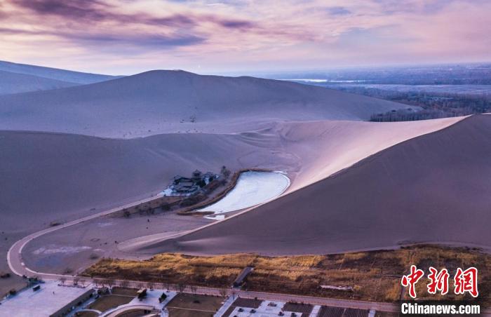近日,甘肅敦煌發(fā)布了冬春旅游季產品和優(yōu)惠政策引客錯峰出游。圖為夕陽西下的鳴沙山月牙泉景色如畫。 王斌銀 攝