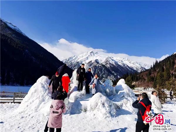 在達(dá)古湖和情人灘,攜手親密戀人共同度過了浪漫冬日時光;與朋友和家人,在洛格斯神山腳下,許下了新年最美好的期許;再去山腳逗弄藏酋猴,親人又可愛,讓不少游客連連喊道:“好可愛的猴子!”