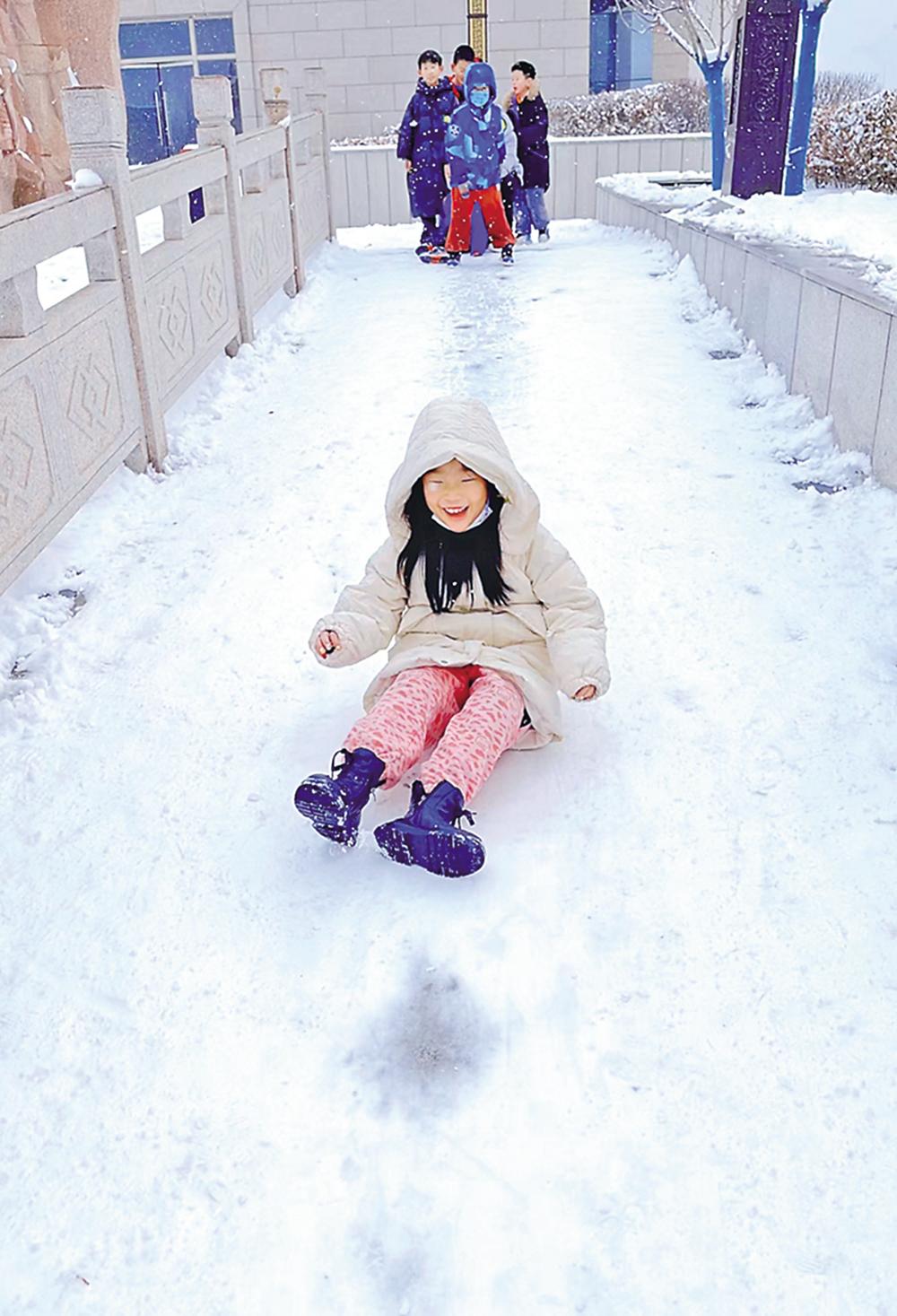雪中嬉戲 本報記者 張寧寧 攝