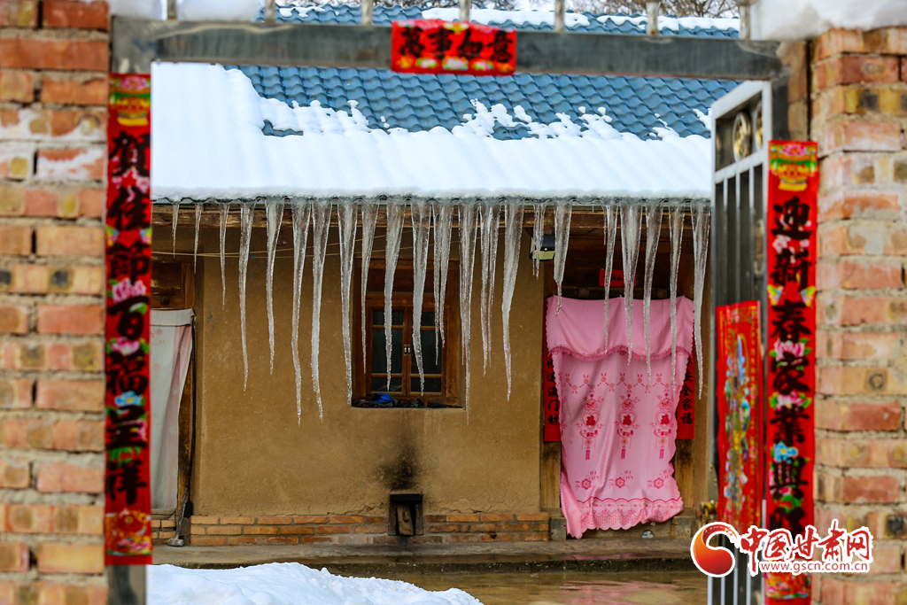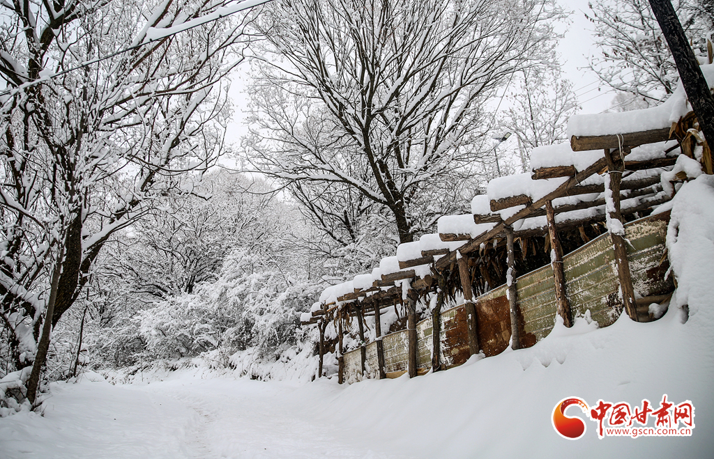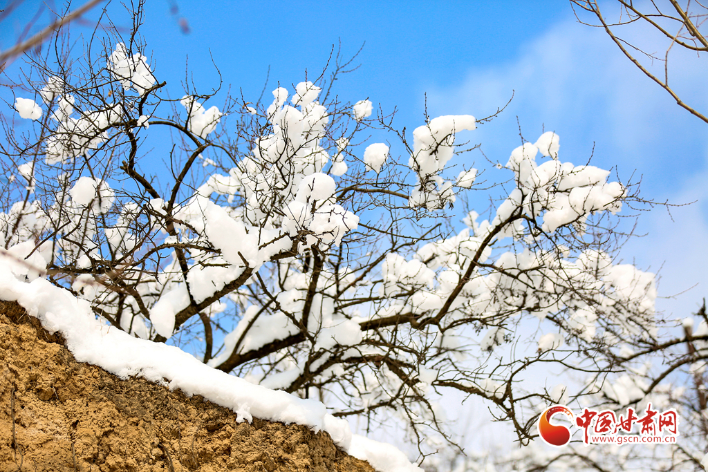2月8日,雪過(guò)天晴,甘肅省平?jīng)鍪徐o寧縣賈河鄉(xiāng)侯山村銀裝素裹,美不勝收。果園、梯田、房屋、公路及遠(yuǎn)山構(gòu)成了一幅天然的鄉(xiāng)村畫卷。