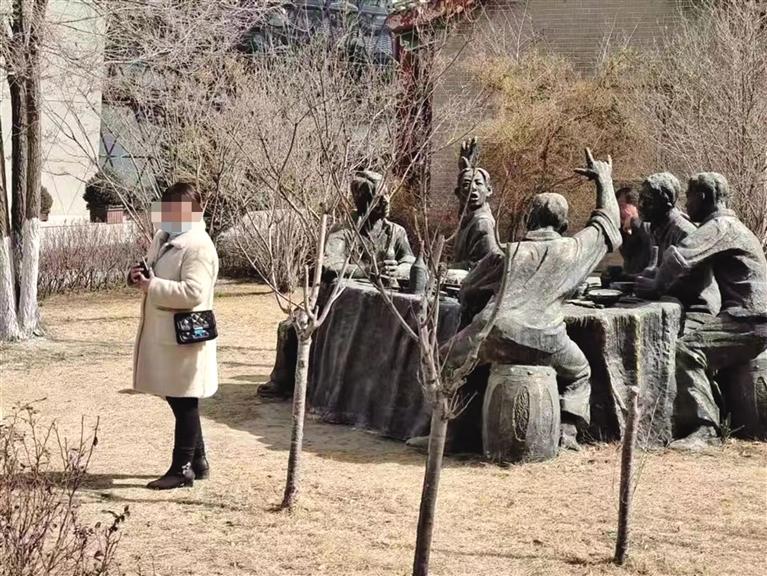 記者在水車(chē)博覽園看到,幾名游客翻越圍欄徑自從剛剛吐露新芽的草地上穿過(guò),有的游客在雕塑上攀爬、玩耍,甚至坐臥在雕塑上拍照,這些行為不僅對(duì)園內(nèi)設(shè)施造成了損壞,也對(duì)個(gè)人和城市造成了不好的影響。