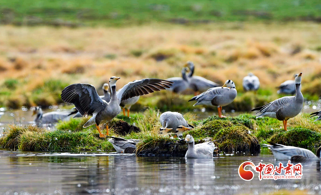近日,隨著天氣轉暖,祁連山國家公園甘肅省管理局酒泉分局鹽池灣濕地境內(nèi)迎來了最佳觀鳥期,斑頭雁、赤麻鴨、黑頸鶴等珍稀候鳥在這里孵化繁殖,讓人驚嘆大自然的美妙神奇。