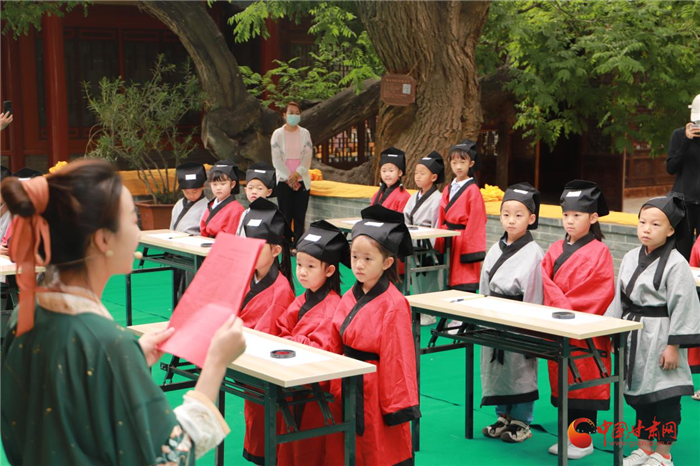 活動二,“開筆啟蒙 詩禮少年”開筆禮活動成功舉辦??鬃釉唬?ldquo;不學禮,無以立”,“開筆禮”古稱“破蒙”,為人生“四禮”之一,也是少兒開始識字習禮的一種啟蒙教育形式,寄托了對孩子成長的美好企盼。少年智則國智,少年強則國強,在文廟舉辦“開筆禮”,就是為了傳承中華優(yōu)秀傳統(tǒng),增強學子文化自信,激發(fā)學習熱情,為中華民族的偉大復興刻苦學習,努力奮斗。