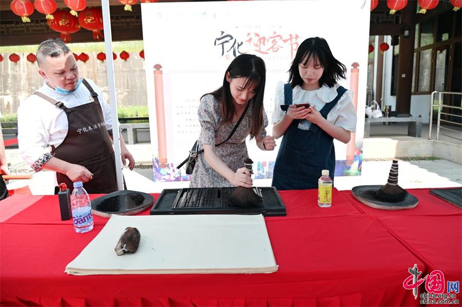 古色古香的蛟湖黃慎文化園,原為清代著名畫(huà)家,揚(yáng)州八怪之一的黃慎所建。他在這里讀書(shū)作畫(huà),其詩(shī)集《蛟湖詩(shī)鈔》流傳至今?;顒?dòng)現(xiàn)場(chǎng),游客們一邊欣賞文化園的古色印記,一邊品鑒名人書(shū)畫(huà)展,遍覽寧化四色資源。(陳祥臨)