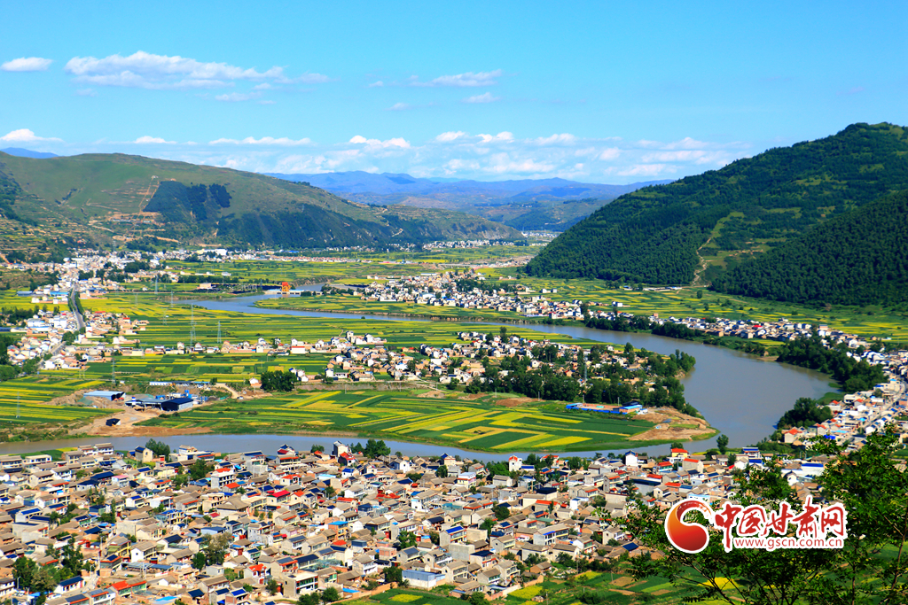 盛夏時節(jié),岷縣十里鎮(zhèn)洮河兩岸的油菜花競相綻放,與民居、山川、林地、豐收在望的各類中藥材相映,構(gòu)成了一幅生態(tài)宜居的田園畫卷,美不勝收。