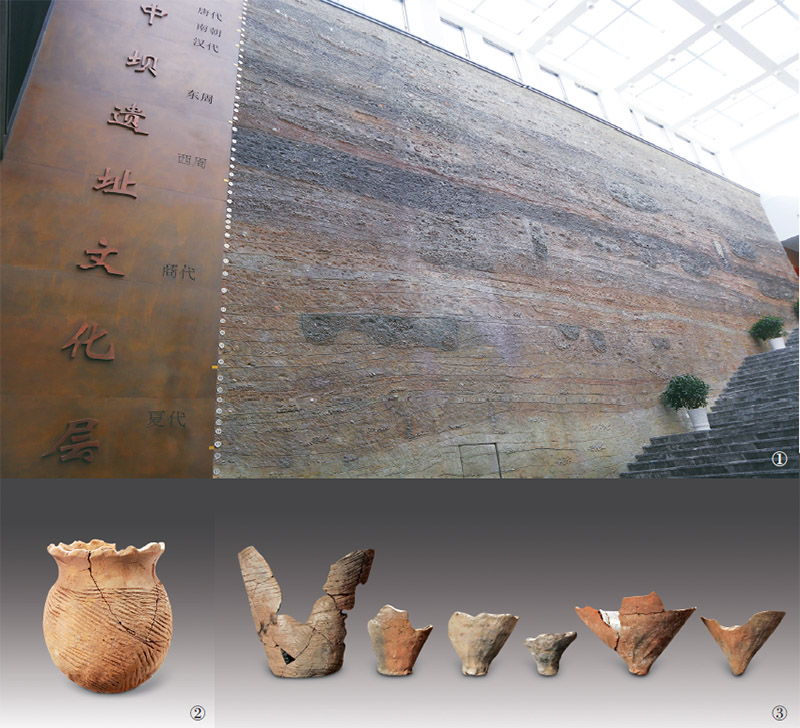 重慶中壩遺址出土的地層文物,完整包含了新石器時(shí)代晚期、夏商周、秦漢、魏晉南北朝、唐宋元明清不同時(shí)代的所有地層,可以讓人們直觀感受到中華五千多年文明綿延不絕的偉大與震撼。圖1為中壩遺址剖面還原圖(圖片來(lái)源:重慶市忠縣縣委宣傳部)。圖2、圖3分別為中壩遺址出土的制鹽陶器花邊口圜底罐、花邊口尖底缸底(圖片來(lái)源:科學(xué)出版社)。