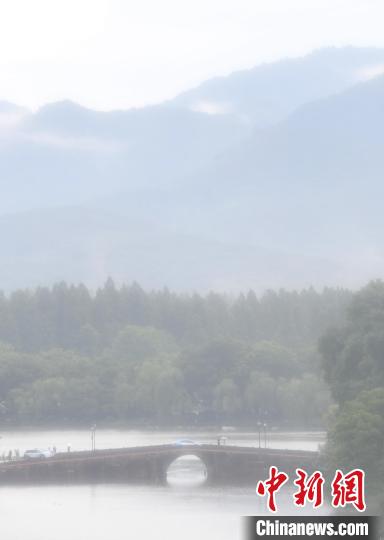 持續(xù)高溫天氣后,杭州終于迎來(lái)降雨,久違的大雨讓西湖景點(diǎn)和群山在雨水和云霧中呈現(xiàn),朦朧的景致如一幅山水畫(huà)一樣,引游人觀賞。