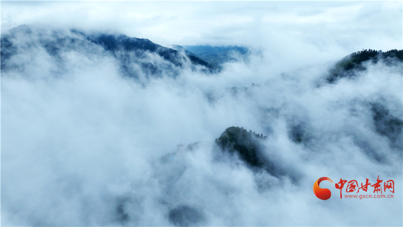 連續(xù)兩日秋雨綿綿,位于榆中縣的興隆山間云霧繚繞蔓延,隨著云霧不斷流動、飄浮,群峰也隨之千變?nèi)f化,宛如仙境。