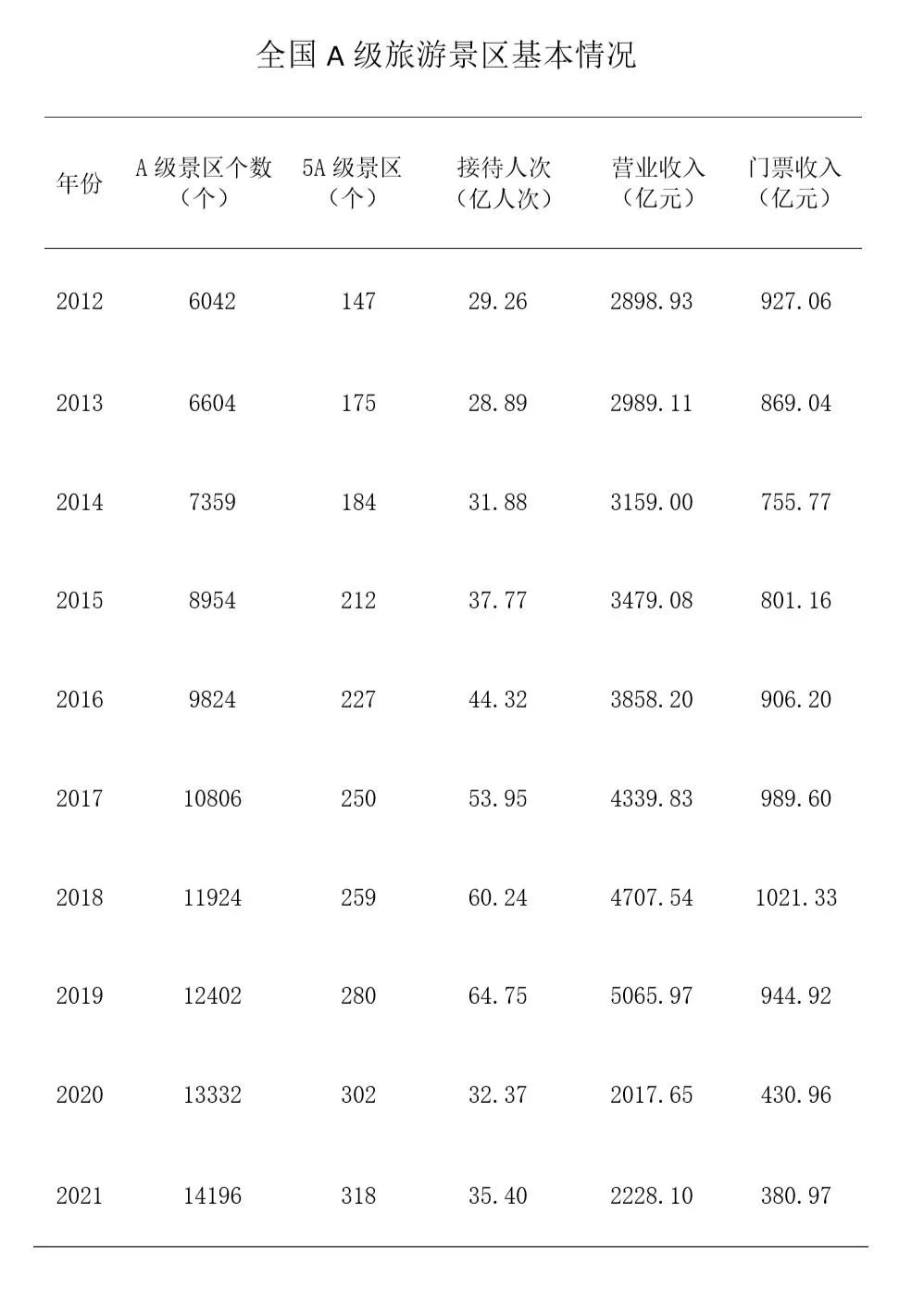 統(tǒng)計數(shù)據(jù)顯示,2021年全國A級旅游景區(qū)個數(shù)達到14196個,全國A級旅游景區(qū)接待游客35.4億人次。