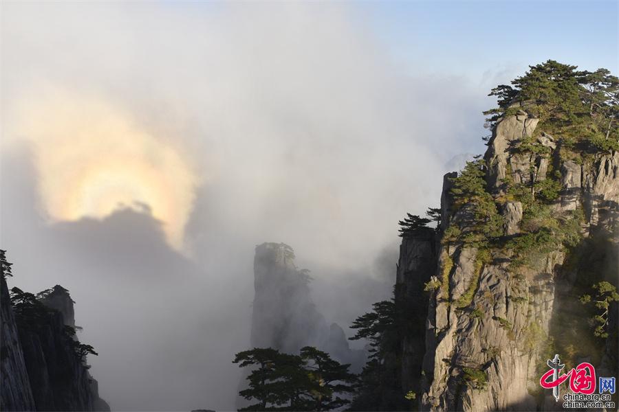 黃山景區(qū)“佛光”顯現(xiàn) 自然美景象征吉祥(圖)