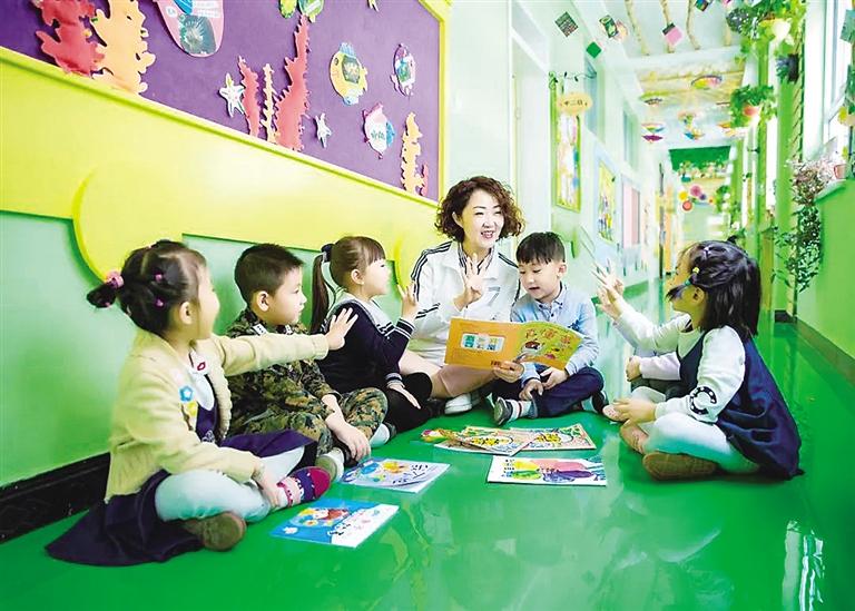 幼兒園教師和孩子們一起讀繪本