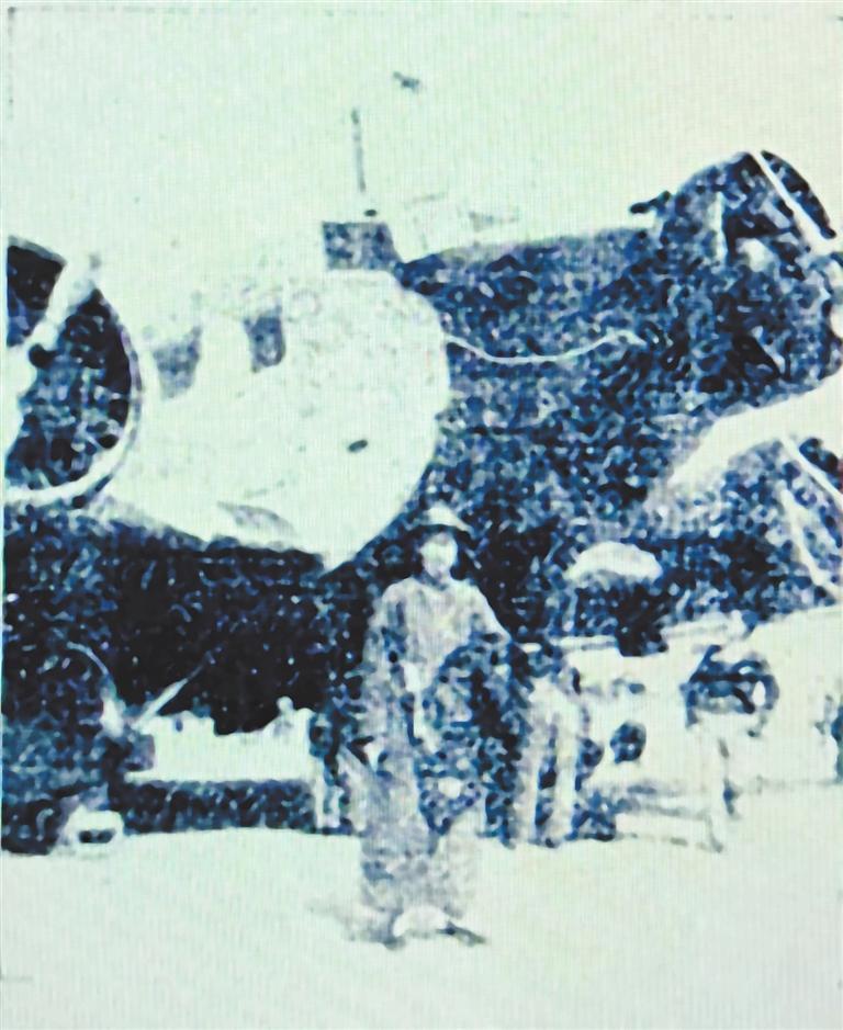 教育家莊澤宣飛往蘭州前在歐亞航空公司JU52型客機(jī)前留影。引自《隴蜀之游》
