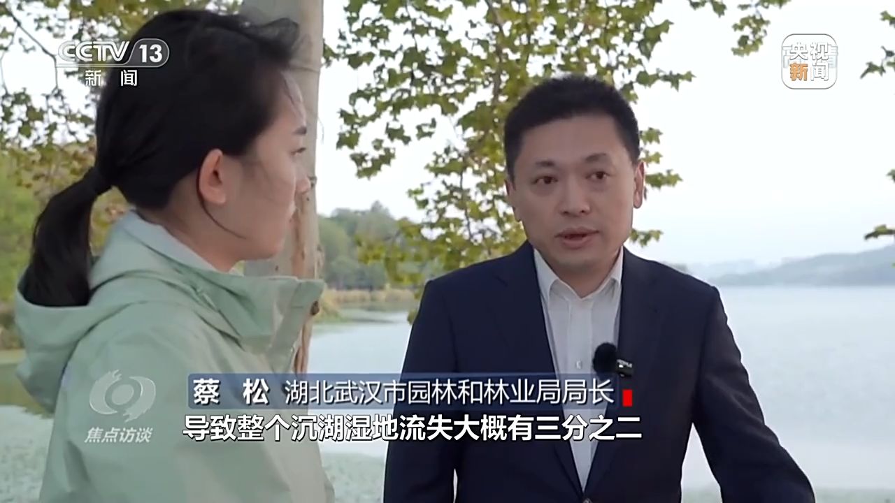 湖北武漢市園林和林業(yè)局局長 蔡松:圍湖造田、養(yǎng)魚,導致整個沉湖濕地流失大概有三分之二,比較嚴重。從2013年開始,武漢市加大對沉湖濕地的整治力度,通過生態(tài)補償?shù)姆绞?,整個退漁還濕達到了7.8萬畝。