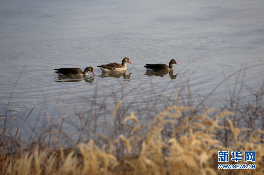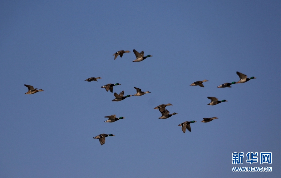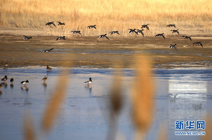 初冬時節(jié),位于鳴沙山下的甘肅省敦煌市黨河濕地,白鷺、綠頭鴨、赤麻鴨、灰雁等候鳥在這里棲息、飛翔、覓食,構成了一幅和諧美麗的生態(tài)畫卷。