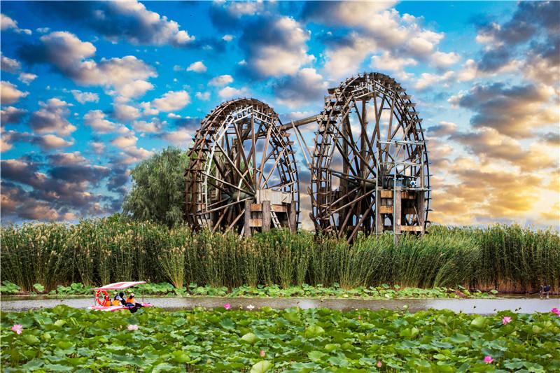 銀川市濕地(包含河流水域)面積531平方公里(80萬(wàn)畝),占市域土地總面積7.65%,人均濕地面236平方米,是全國(guó)的6倍,市區(qū)濕地率達(dá)到10.65%,濕地保護(hù)率達(dá)到78.5%,2018年被評(píng)為我國(guó)首批“國(guó)際濕地城市”。鳴翠湖位于興慶區(qū)掌政鎮(zhèn),總規(guī)劃面積8840畝,是歷史上銀川“七十二連湖”重要組成部分,是中國(guó)西部地區(qū)和黃河流域首家國(guó)家濕地公園、“國(guó)內(nèi)首個(gè)立體生態(tài)荒漠化濕地成功修復(fù)力作”、國(guó)家水利風(fēng)景區(qū)、國(guó)家4A級(jí)旅游景區(qū),享有“中國(guó)最美濕地公園”“中國(guó)生態(tài)保護(hù)最佳濕地”等美譽(yù)。銀青公路穿湖而過(guò),將其分為南北兩湖,其中:南湖為濕地生態(tài)保護(hù)核心區(qū)占地3845畝,只進(jìn)行濕地保護(hù)與恢復(fù)性建設(shè);北湖占地4995畝,進(jìn)行濕地景觀建設(shè)和濕地生態(tài)旅游項(xiàng)目的開(kāi)發(fā)經(jīng)營(yíng)。鳴翠湖湖泊面積占湖區(qū)面積的80%,景區(qū)生物多樣性富集,有維管植物109種、水生浮游植物69種、鳥類97種。湖光瀲滟、蘆葦蕩漾、楊柳依依、水車吱吱、魚翔淺底、百鳥鳴翠,遠(yuǎn)望水鷺雙飛起,近看風(fēng)荷一向翻;接天蓮葉無(wú)窮碧,映日荷花別樣紅,在我國(guó)西北干旱地區(qū)和黃河沖積平原區(qū)域具有典型性和代表性。
