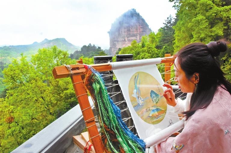 “應(yīng)用現(xiàn)代審美思維創(chuàng)作出麥積山石窟系列刺繡文創(chuàng)作品,麥積刺繡藝術(shù)品的觀賞價(jià)值和實(shí)用價(jià)值會(huì)進(jìn)一步凸顯。”曹苑春說。除此之外,畫繡、雙面繡團(tuán)扇、香包、刺繡宮燈、刺繡擺臺(tái)等作為裝飾生活的藝術(shù)品,已被很多人所喜愛,刺繡作品正以全新的面貌走入尋常百姓家。