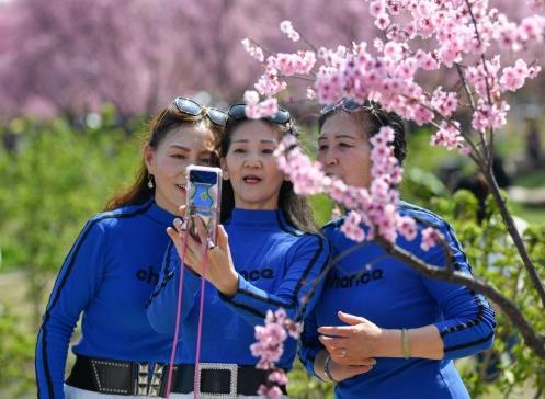 3月8日,游人在都江堰市青城山鎮(zhèn)“問(wèn)花村”自拍