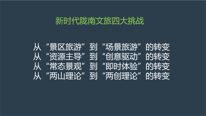 作為具備后發(fā)優(yōu)勢的隴南,在推進文旅康養(yǎng)產(chǎn)業(yè)發(fā)展的過程中,我們必須認識和應對這四大轉變或調整,“謀定而動”,否則,如果我們還以傳統(tǒng)的方式追求建設景區(qū),有可能做出來的大項目,是過時的,過期的,是被當下的旅游消費者所遺棄的。
