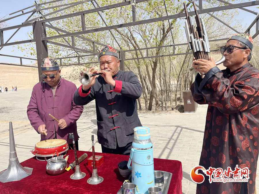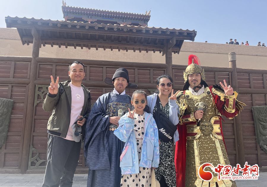 中國甘肅網(wǎng)5月3日訊(通訊員 陳楚)“開城,迎賓。”5月1日上午,在嘉峪關(guān)關(guān)城景區(qū),隨著號角聲響起,兩名門衛(wèi)士兵緩緩打開城門,來自全國各地的游客,隨著守門將軍的步伐,誓師出征,游客們置身歷史氛圍,仿佛回到古時的大漠邊關(guān)。