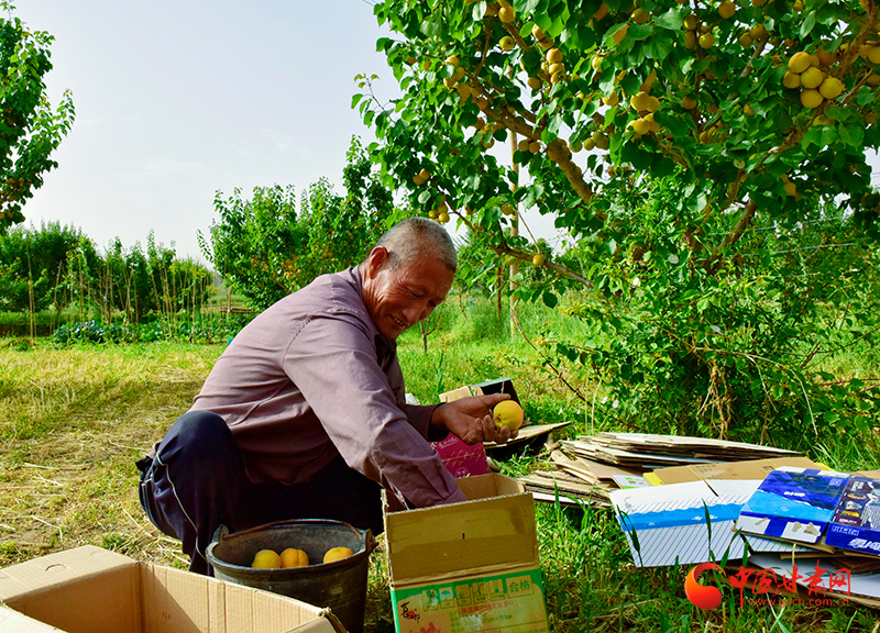 楊建國對采摘的大接杏進行裝箱