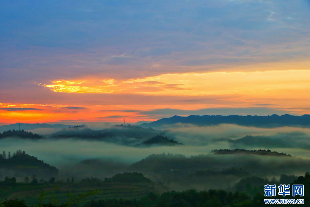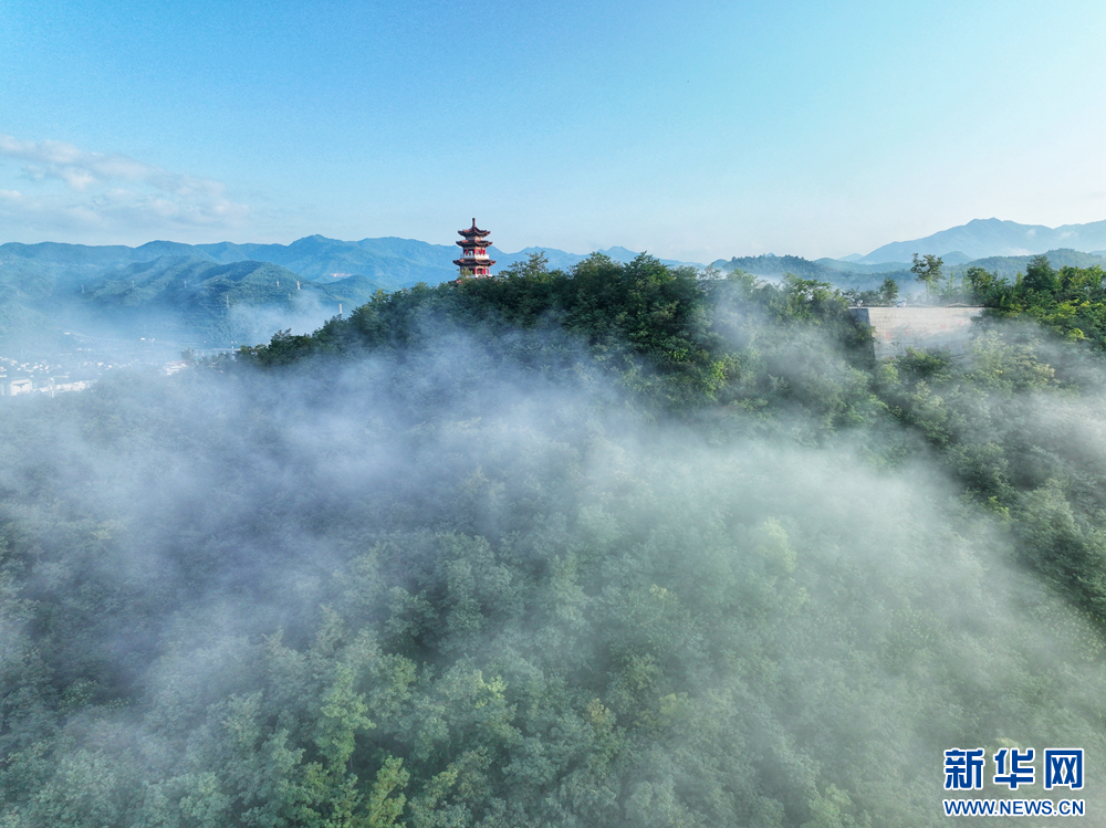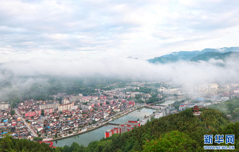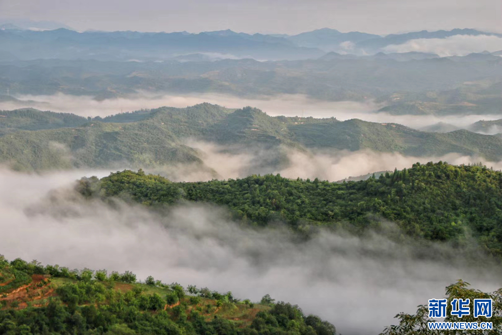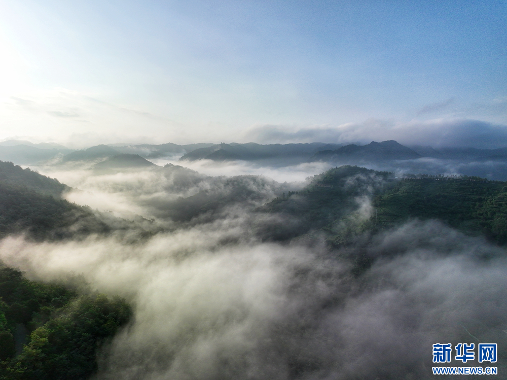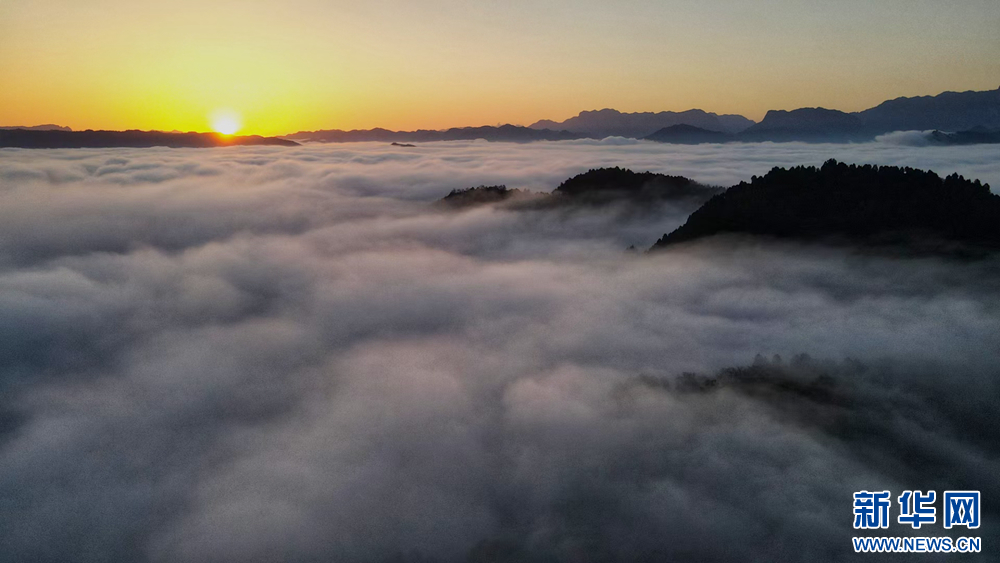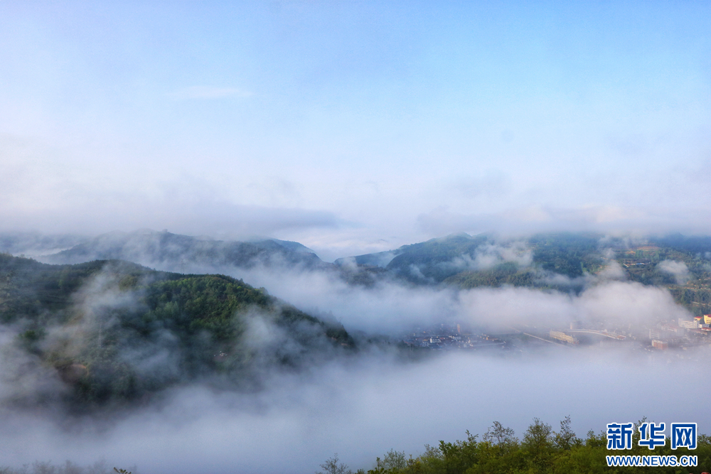 近日,甘肅省隴南市兩當縣上空云霧繚繞、煙波浩渺,縣城、山峰在霧海中若隱若現,陽光從云霧間掠過,勾勒出一幅幅如夢如幻的美麗畫卷。新華網發(fā)(楊曉 攝)