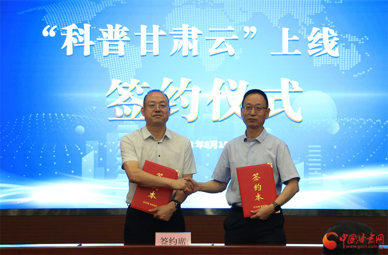 甘肅省科協(xié)黨組成員、副主席馮永成與中國甘肅網(wǎng)總編輯、總經(jīng)理張振宇簽署了戰(zhàn)略合作協(xié)議。
