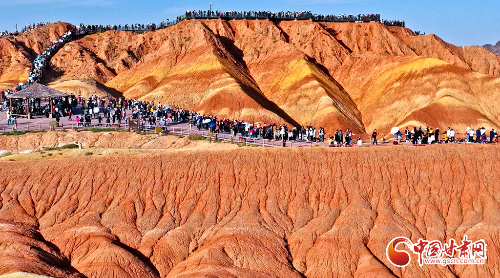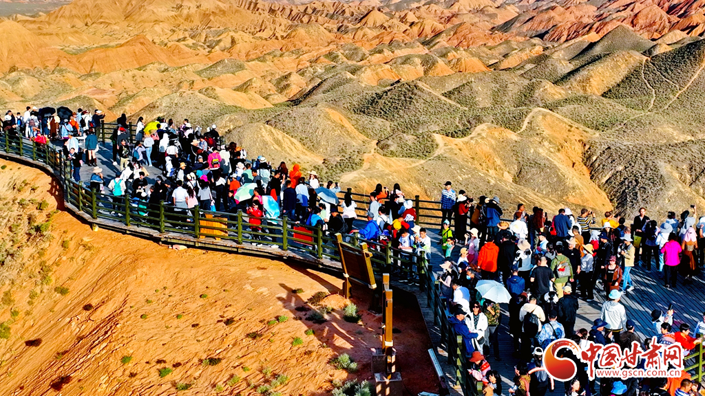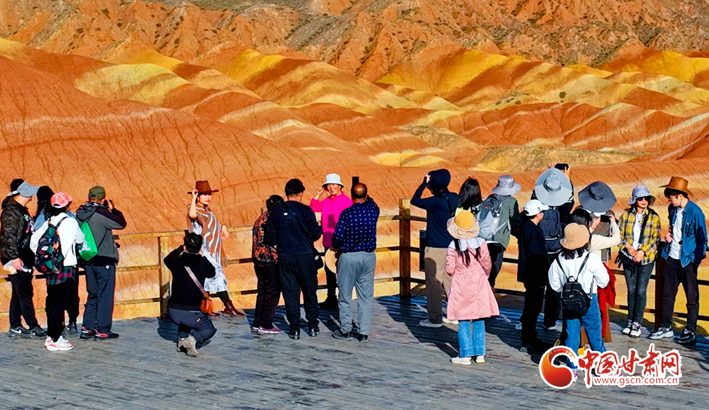 9月30日,甘肅張掖七彩丹霞景區(qū)內(nèi)人頭攢動(dòng),全國(guó)各地的游客紛至沓來,欣賞獨(dú)特的丹霞地貌,領(lǐng)略西北壯美景色。