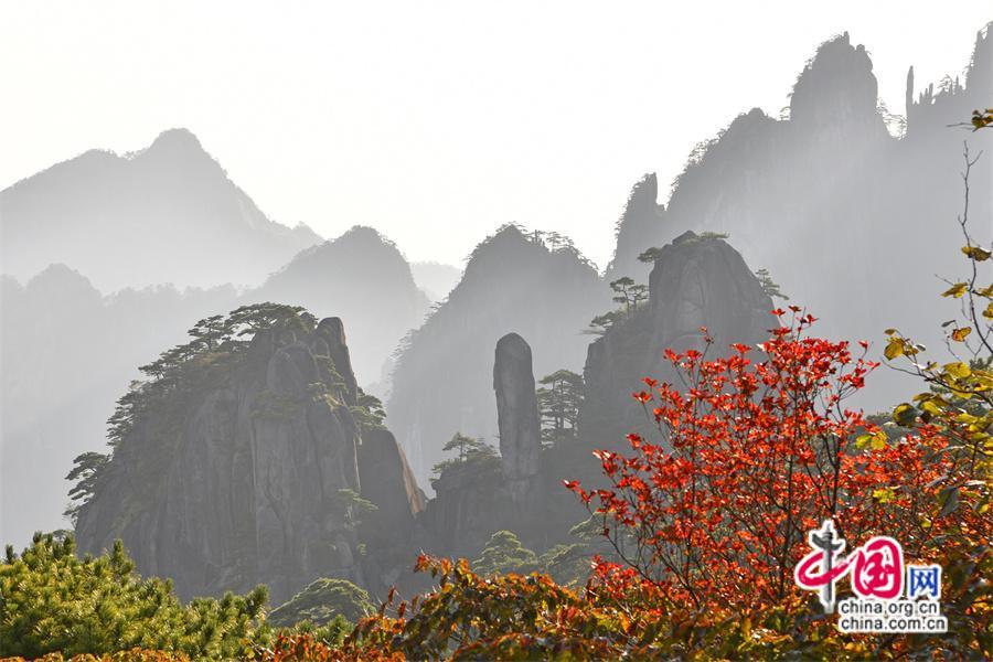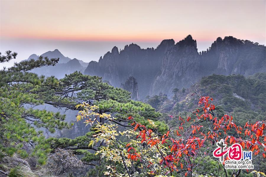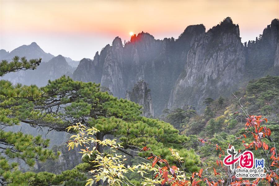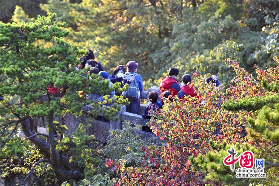 10月以來黃山風(fēng)景區(qū)已進(jìn)入秋色斑斕季節(jié),是一年中色彩最豐富的季節(jié),晨曦暮落,處處如畫,古松與秋果相隨,青紅交織,金黃色的樹葉隨秋風(fēng)在空中飛舞,或飄落在游步道上、或散落在峽谷中,處處生機盎然,令人流連忘返,明代旅行家徐霞客是這樣贊美黃山的“楓林相間,五色紛披,燦若圖繡”。