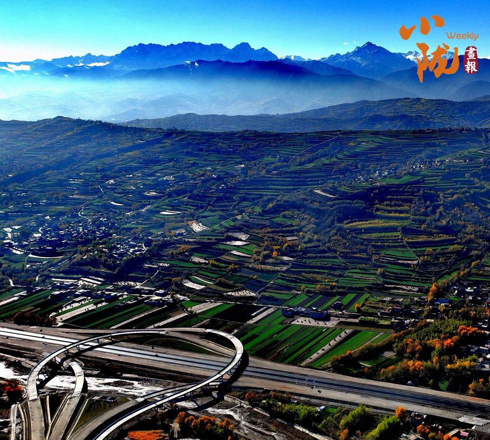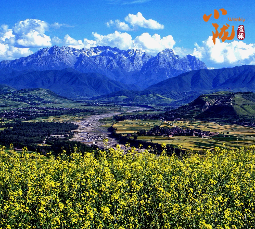 百里平川襯托著綿延群山,一邊是麥?zhǔn)蝻h香的一個個綠色盆地,一邊是披蒼著翠的太子山脈。