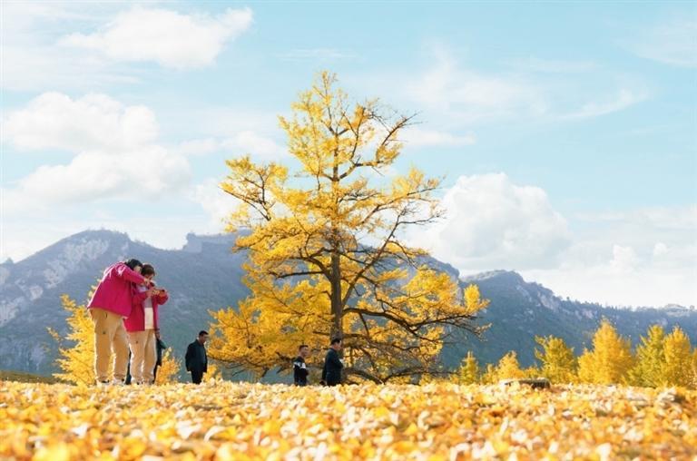 金秋時節(jié),走進(jìn)徽縣嘉陵鎮(zhèn)田河村,恍若走進(jìn)了金色的仙境。153棵古銀杏樹滿身金黃,一地落葉似“金色地毯”。銀杏樹下,品銀杏茶、吃銀杏果、享銀杏風(fēng)情,美不勝收,吸引眾多游客前來拍照打卡。如今,美麗風(fēng)景變身“美麗經(jīng)濟(jì)”,當(dāng)?shù)匾劳星赉y杏資源優(yōu)勢,引進(jìn)“銀杏夢谷”旅游項(xiàng)目,打造集旅游觀光、生態(tài)康養(yǎng)、休閑娛樂、農(nóng)特產(chǎn)品銷售為一體的美麗鄉(xiāng)村旅游示范點(diǎn),讓千年古樹煥發(fā)新的生機(jī)。本報記者 冉創(chuàng)昌 高瓊 攝
