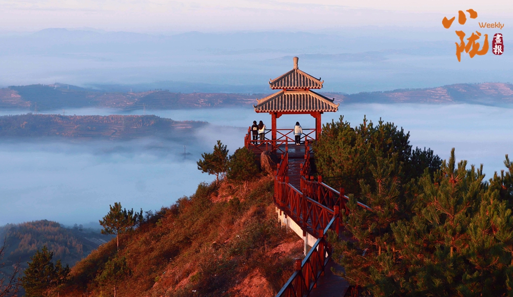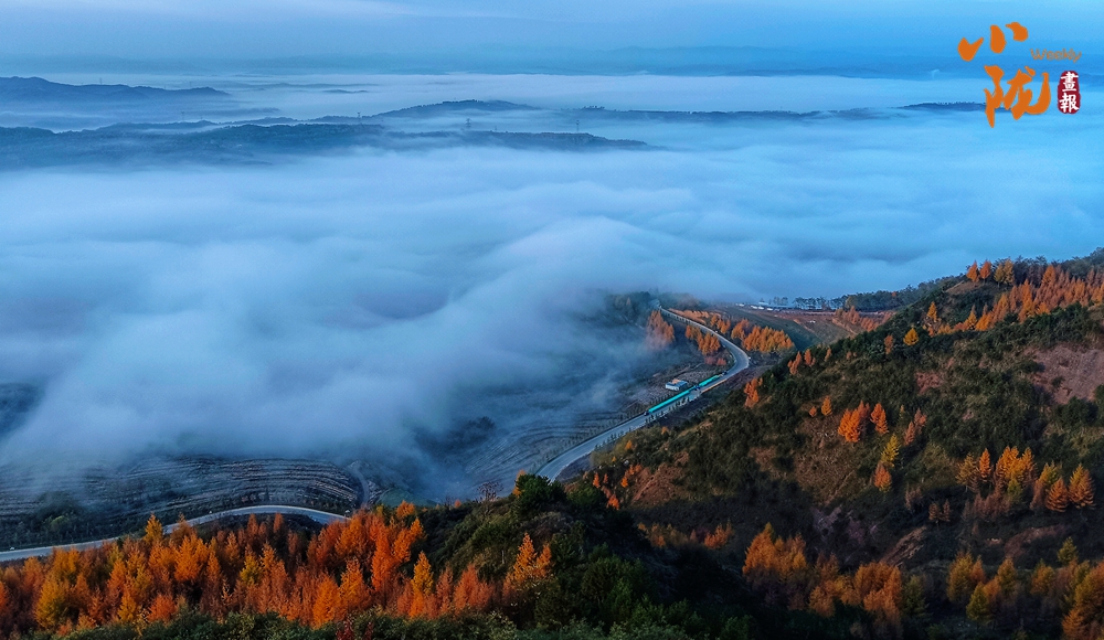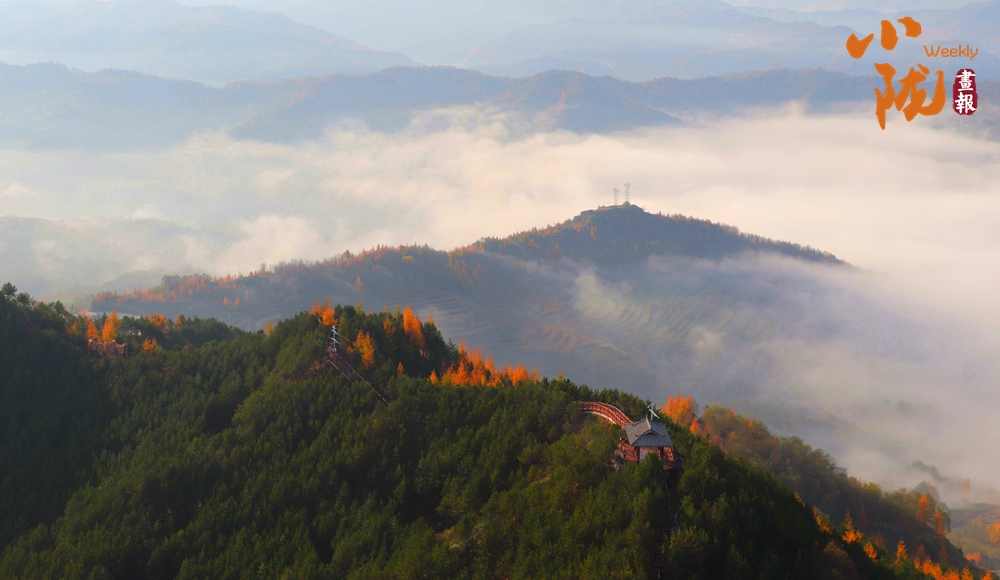 一場(chǎng)秋雨過后,境內(nèi)云華山呈現(xiàn)出一瀑萬(wàn)頃、白浪翻滾的云海景象。