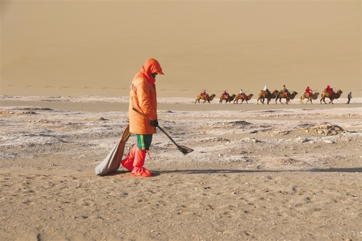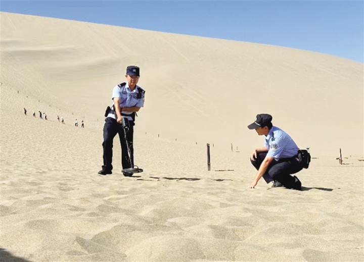 在鳴沙山·月牙泉景區(qū),負(fù)責(zé)執(zhí)勤的景區(qū)派出所民警,不僅維護(hù)景區(qū)及周邊的治安,也為游客提供熱心周到的服務(wù),僅在沙漠中為游客尋找的手機每年就有100余部,尋找返還隨身物品200余件,用“5A”警務(wù)服務(wù)5A景區(qū)。