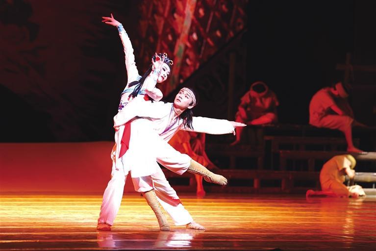 經(jīng)典舞劇《大夢敦煌》是一部富于傳奇色彩的四幕舞劇,首演至今,已獲得中宣部“五個一工程”獎、中國舞蹈“荷花獎”、中國“文華獎”等多個獎項(xiàng),被譽(yù)為中國原創(chuàng)舞劇中的頂級之作,民族舞劇的經(jīng)典之作。當(dāng)晚,集故事美、音效美、舞美美、表演美于一身的《大夢敦煌》,以一場淋漓盡致、亦夢亦幻的完美演出,收獲了現(xiàn)場觀眾經(jīng)久不息的掌聲。圖為演出現(xiàn)場。