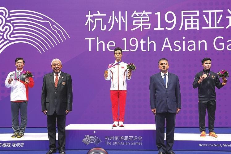 常志昭(中)在杭州亞運(yùn)會領(lǐng)獎臺上。