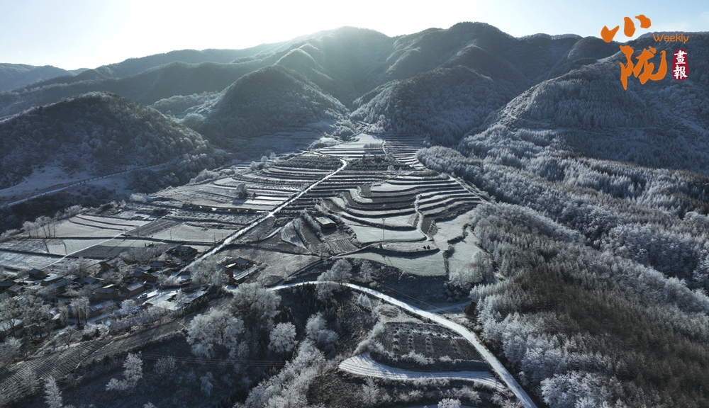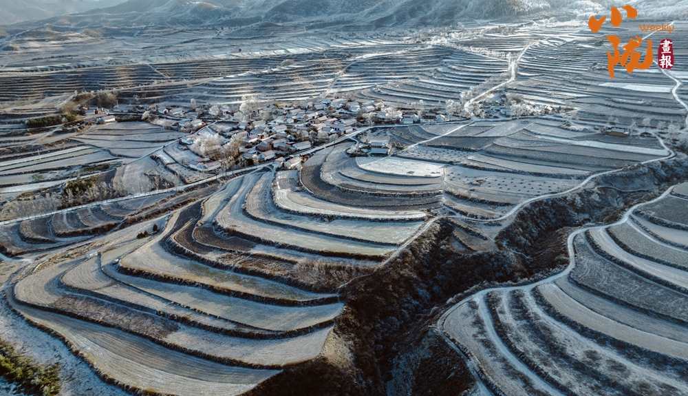 雪落千層入畫來(lái)。雪后初晴,被冬雪覆蓋的梯田,銀裝素裹,如大自然的素描,錯(cuò)落有致的線條,慢慢鋪展出一幅山村美景。