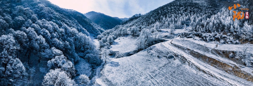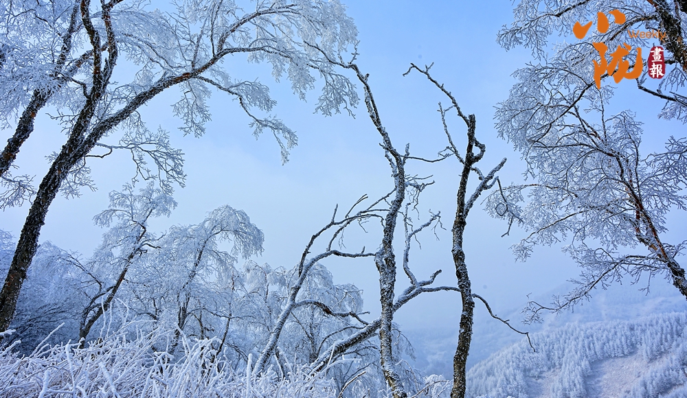 走進(jìn)關(guān)山,看到的是一個(gè)神話般的雪韻凇情美景,霧凇結(jié)在樹上,亮晶晶的猶如一根根銀條,浪漫唯美,別有韻味。