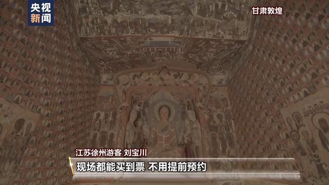 江蘇徐州游客 劉寶川:因為去年敦煌的旅游太熱了,駱駝都等紅綠燈,所以今年我想著冬天來可能人少一些。現(xiàn)場都能買到票,不用提前預約。