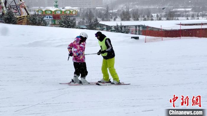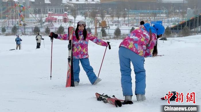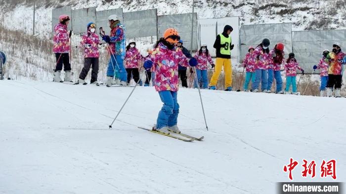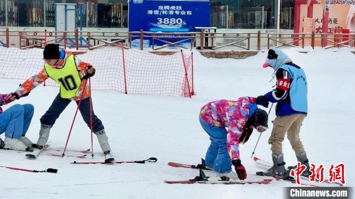 圖為滑雪教練對臺胞青年進行首次滑雪前的培訓(xùn)。王牧雨 攝