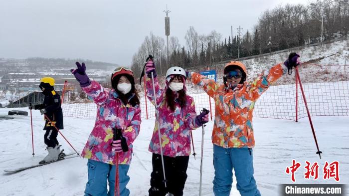 圖為臺胞青年在滑雪場合影留念。王牧雨 攝