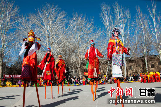 2024年春節(jié)假期,敦煌市組織城鄉(xiāng)9支社火隊(duì)在城區(qū)開展社火展演活動,讓游客近距離體驗(yàn)和感受敦煌民俗文化的獨(dú)特魅力,營造紅紅火火、熱鬧喜慶的節(jié)日氛圍。王斌銀 攝